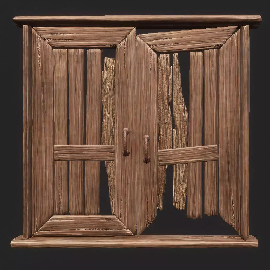 -64 one wing wooden doors of two different colors (plain, closed, ajar, broken, rotting, scorched, torn poster)