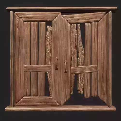 -32 double wings wooden doors of two different colors (plain, closed, ajar, broken, rotting, scorched, torn poster)