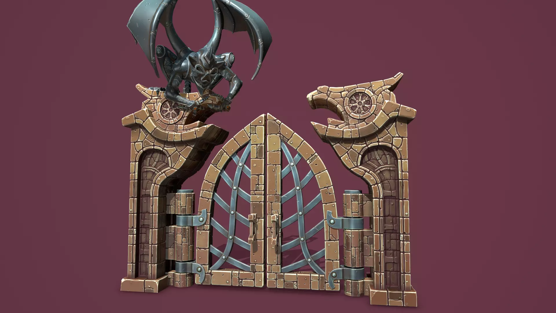 The model consists of 5 materials, this is - Main-Door, Main-Door-Mechanism, Main-Gargoyle, Gargoyle-Stand, Main-Obelisk