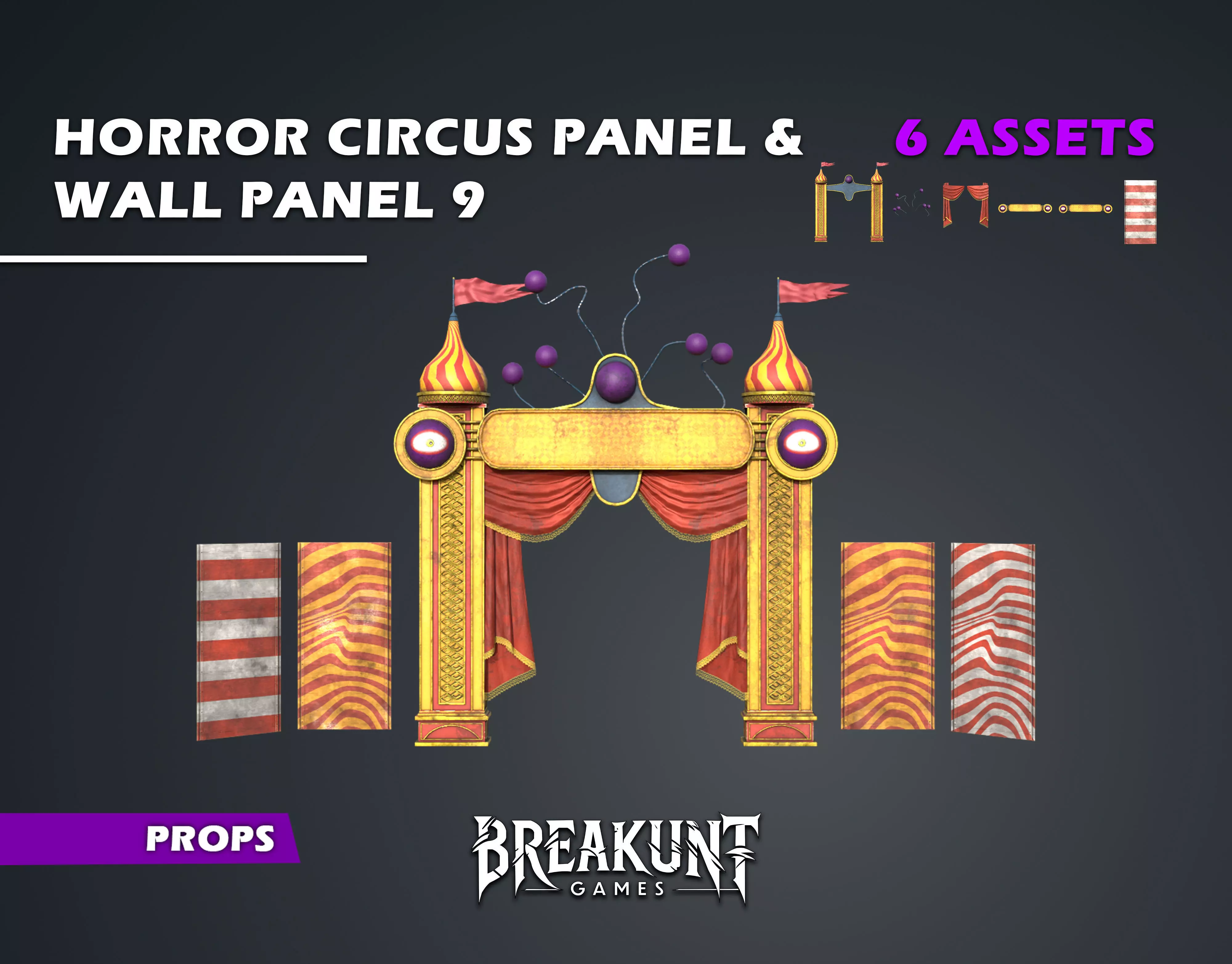 - https://www.cgtrader.com/3d-models/various/various-models/horror-circus-panel-with-wall-panel-7-5-assets