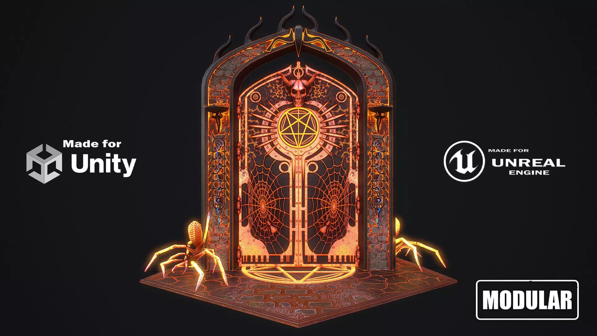 Hello. This is a high definition quality polygon of a Medieval Door 1 game ready modular 3D Model with PBR textures. Extremely detailed and realistic. Suitable for movie prop, architectural visualizations, advertising renders, games, VR, AR and other. The archive includes Obj and FBX, Marmoset scene, textures for the Unity: Base color, Metallic, Mixed AO, Normal_OpenGL, Roughness. And also included in the archive textures for UE: BaseColor, Normal, OcclusionRoughnessMetallic. All textures are 4k resolution. The model contains 521 objects: Flame - 512th, Medieval_Door_1_Door, Medieval_Door_1_Door_1, Medieval_Door_1_essence, Medieval_Door_1_essence001, Medieval_Door_1_Floor, Medieval_Door_1_Pentacle, Medieval_Door_1_Portal.