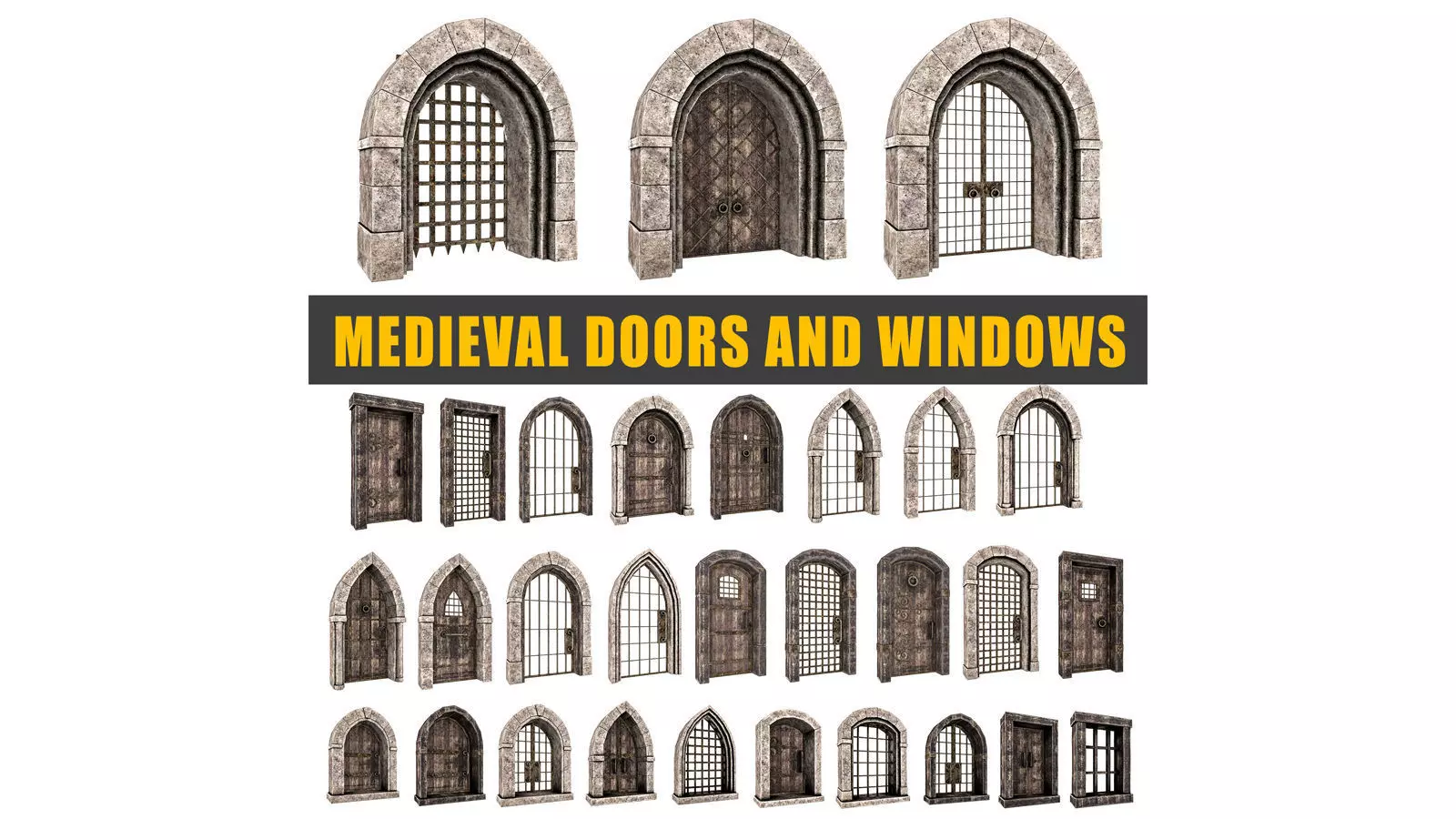 The medieval door and window set can be an impressive element for your projects. high resolution skins (8k) ready for game. open and closed. There are many different door and window models. The skins are very realistic and look good even up close. Outdated images enrich your project.
