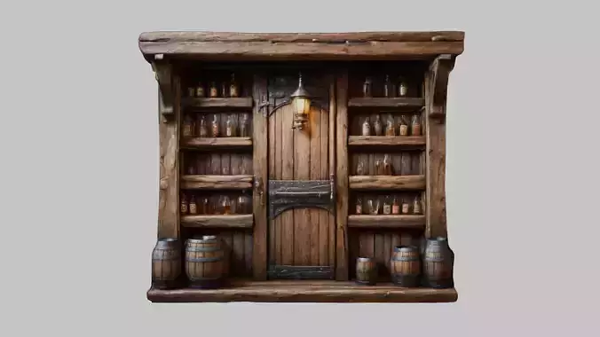 Medieval Tavern Wall door Low-poly 3D model