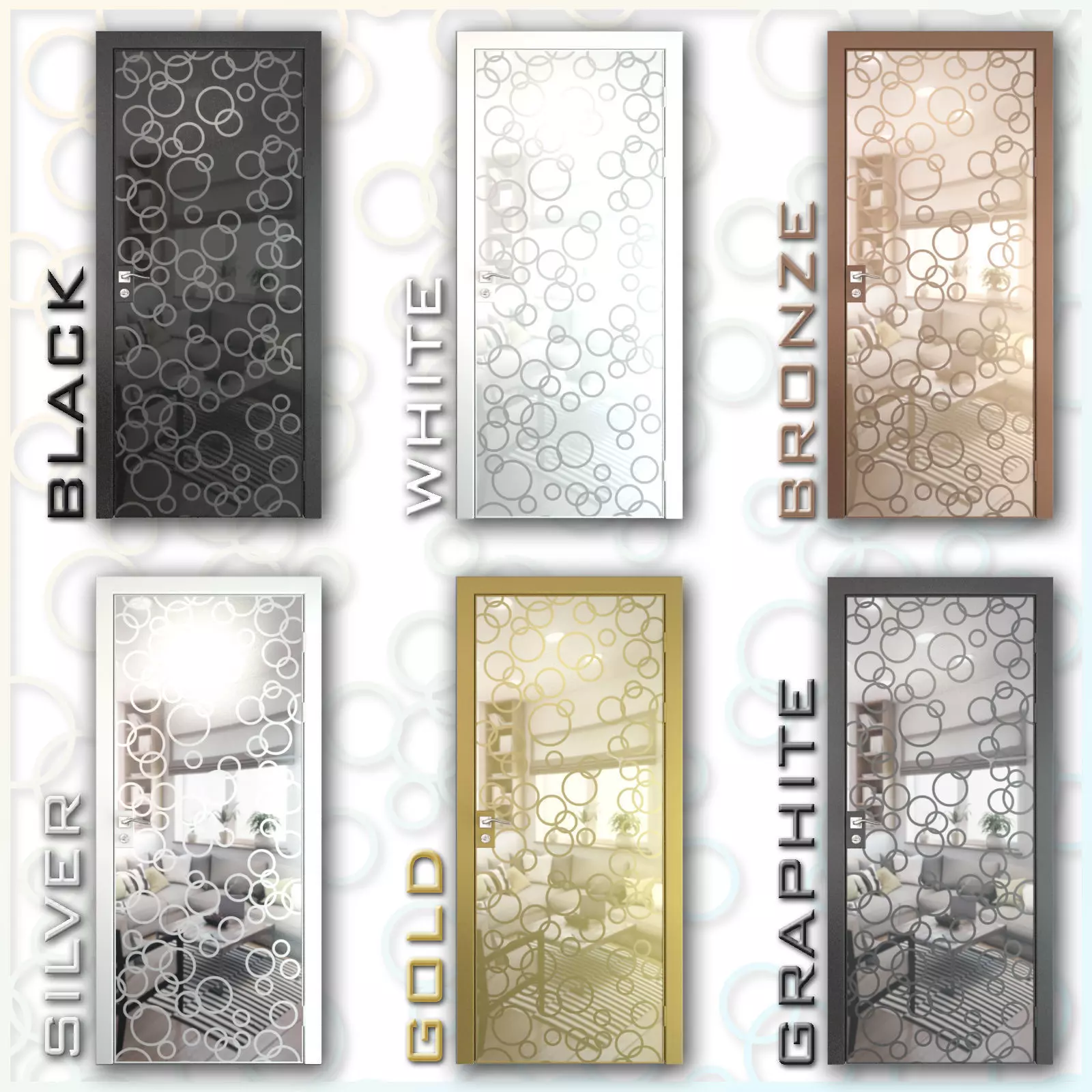 Scene contains six materials for model: black, white, bronze, silver, gold, graphite (choose in the material editor).