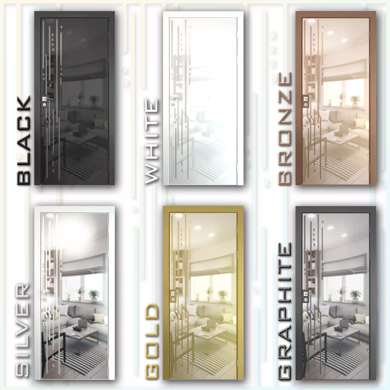Double-sided mirrored door.Materias: mirrored glass, wood.