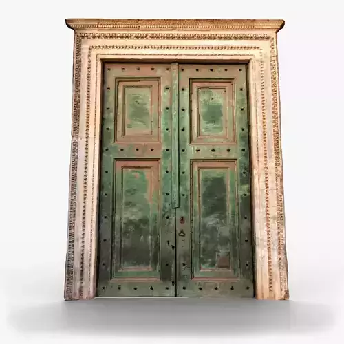 Ornate Roman palace double door with carved stone frame and aged bronze panels featuring decorative studs and classical moldings. Photogrammetry scan with PBR textures.