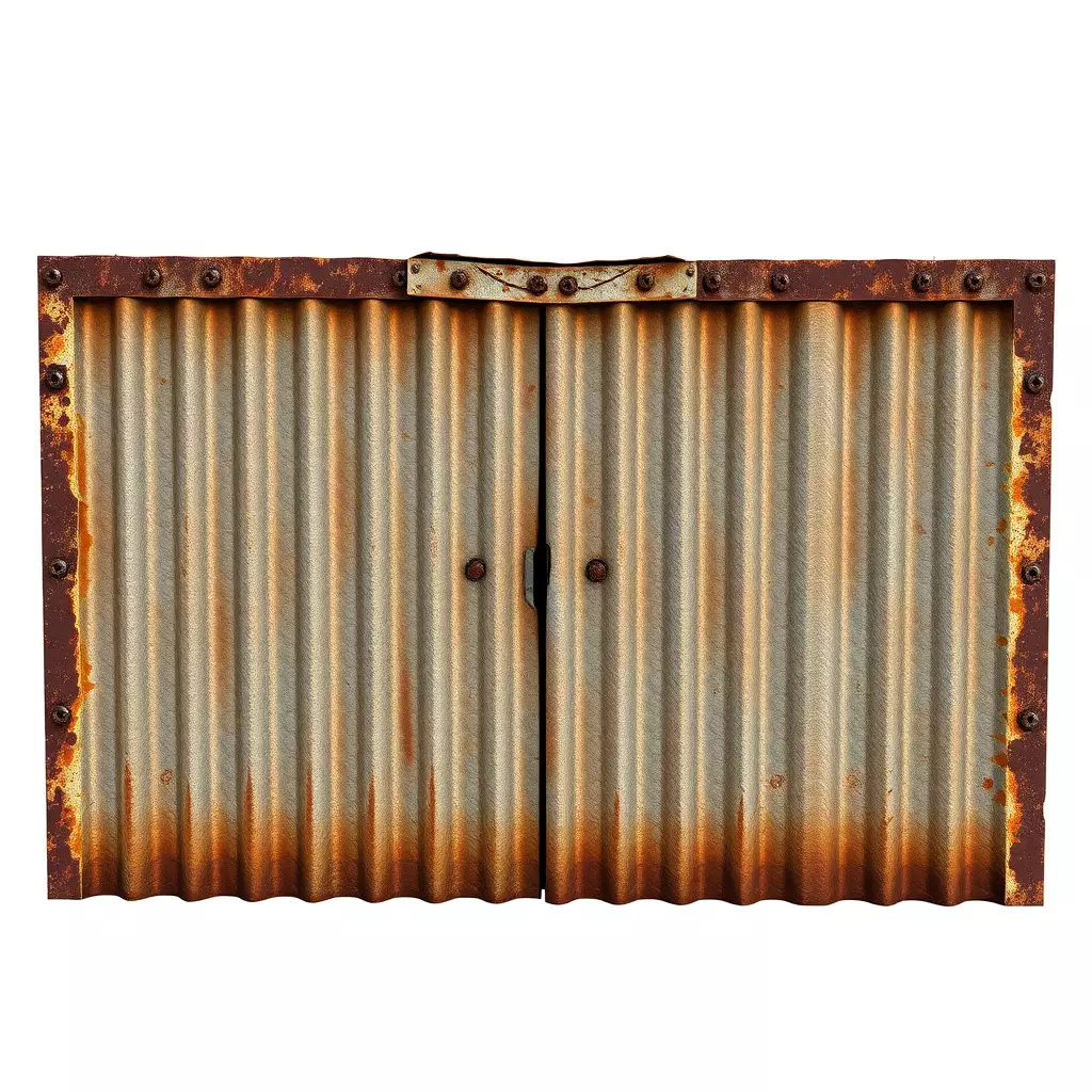 This highly detailed 3D model presents a set of rusty corrugated metal double doors, meticulously crafted to replicate a weathered and aged appearance. The model features distressed steel panels, prominently displaying realistic rust, peeling paint, and environmental wear. A sturdy, equally rusted metal frame with visible rivets secures the corrugated sheets, adding to its authentic industrial or derelict aesthetic. This versatile asset is ideal for various digital applications, including enriching game environments for post-apocalyptic, survival, horror, or industrial-themed scenes, where it can serve as a crucial prop for sheds, barns, or forgotten structures. It is also perfectly suited for architectural visualization projects requiring a rustic or abandoned look, as well as for film, animation, and digital art compositions that demand high visual fidelity. The model is optimized for real-time applications, ensuring efficient performance in AR/VR experiences and game engines. It comes fully UV unwrapped with high-quality PBR textures (Albedo, Normal, Roughness, Metalness, Ambient Occlusion) to deliver photorealistic rendering. Clean topology ensures smooth performance and easy integration into any 3D pipeline. Supported file formats include GLB, OBJ, STL, ABC, DAE, FBX, USD, and PLY, offering broad compatibility for different software. Its robust design and authentic detailing make it suitable for both static renderings and dynamic, interactive environments.