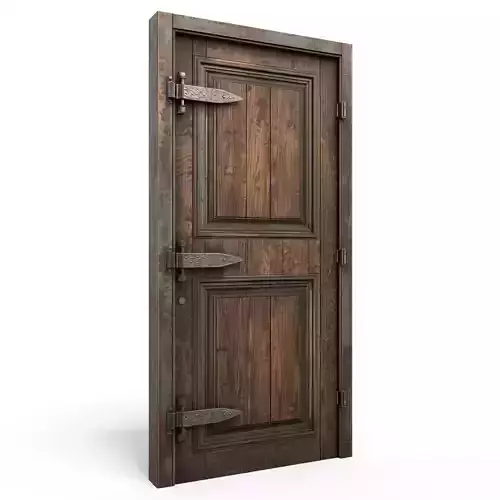 Tagstimber door, medieval 3D model, rustic entrance, wooden asset, game ready prop, weathered wood, ornate hinges, historical door, residential prop, PBR textures, wrought iron, architectural visualization