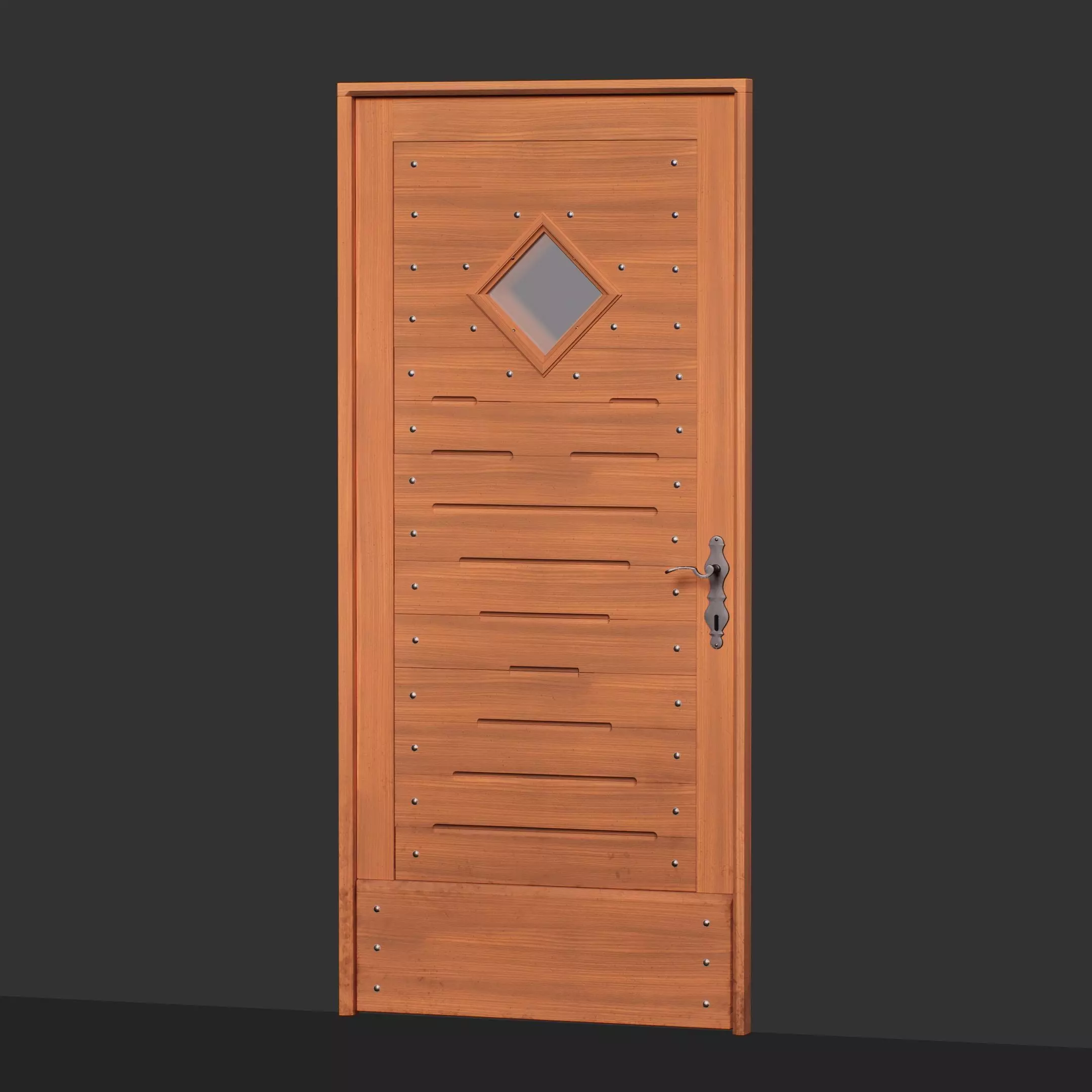 Larch Wood Door - glass window - steel handle and hinges - ornate steel nails