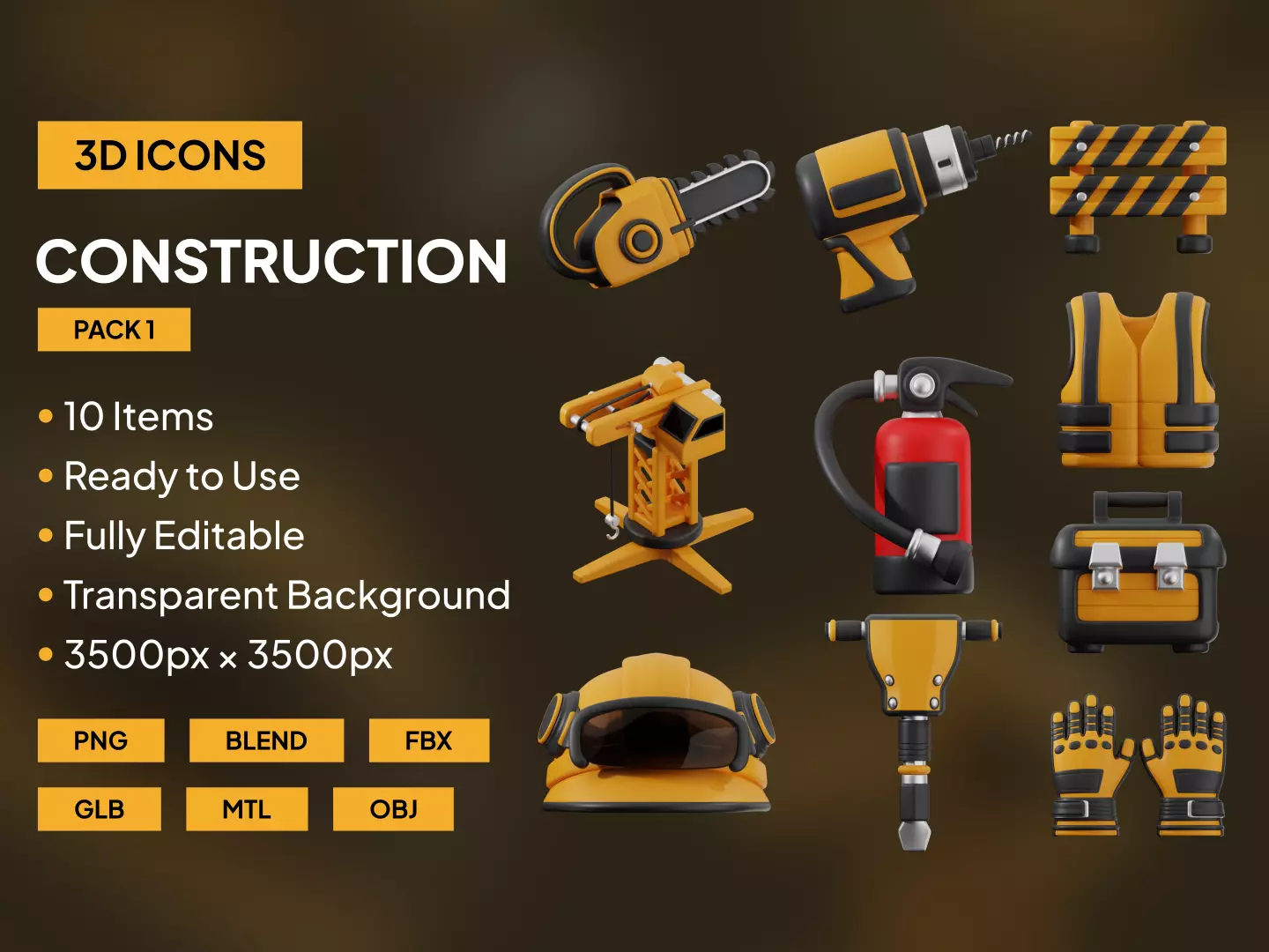 A bold 3D icon pack built for showcasing construction, tools, and heavy duty ideas with visual strength. Ideal for apps, websites, packaging, social media contents, or marketing visuals. Delivered in high resolution and multiple file formats for flexible use across web, app, or print.