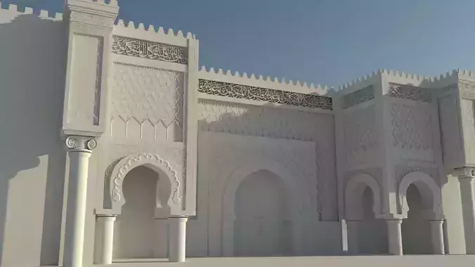 This 3D model is inspired by the Ben Mansour landmark in Meknes, Morocco, carefully designed to reflect authentic Moroccan and Arab-Islamic heritage.The model features traditional Moroccan and Arabic ornamentation, combined with artistically engraved Quranic verses, highlighting the spiritual and cultural depth of Moroccan architecture.