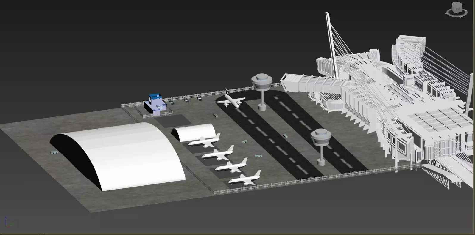 this is an international airport model. the files are .MAX,FBX.OBJ.MTLthis file contains:1-airport2- airplane3- small police department4- police car5-g17 pistol6- shotgun7-airport building8- airport communication tower9-workers car