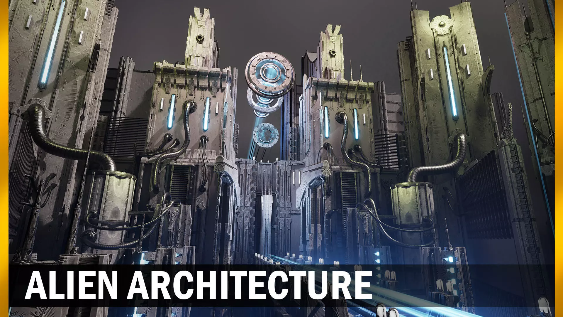The pack contains a set of different elements for building alien structures, several seamless materials for pipes and walls, a set of pre-assembled buildings, as well as a pre-assembled demo scene.