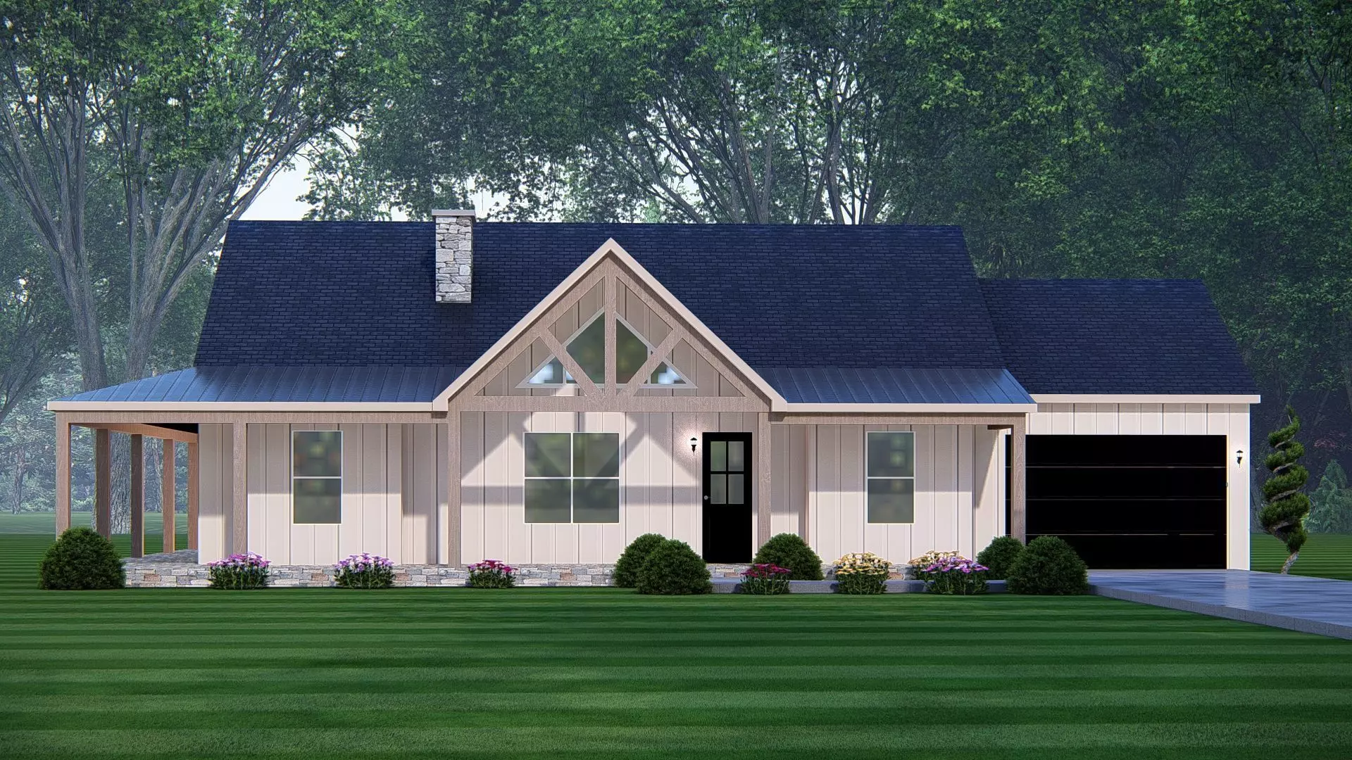 This 3D render of an American Exterior House Design showcases the timeless charm and functionality of classic American architecture. Featuring a pitched roof, wide porch, clean facade, and balanced proportions, the design captures the essence of family-friendly suburban living while blending modern comfort with traditional style.