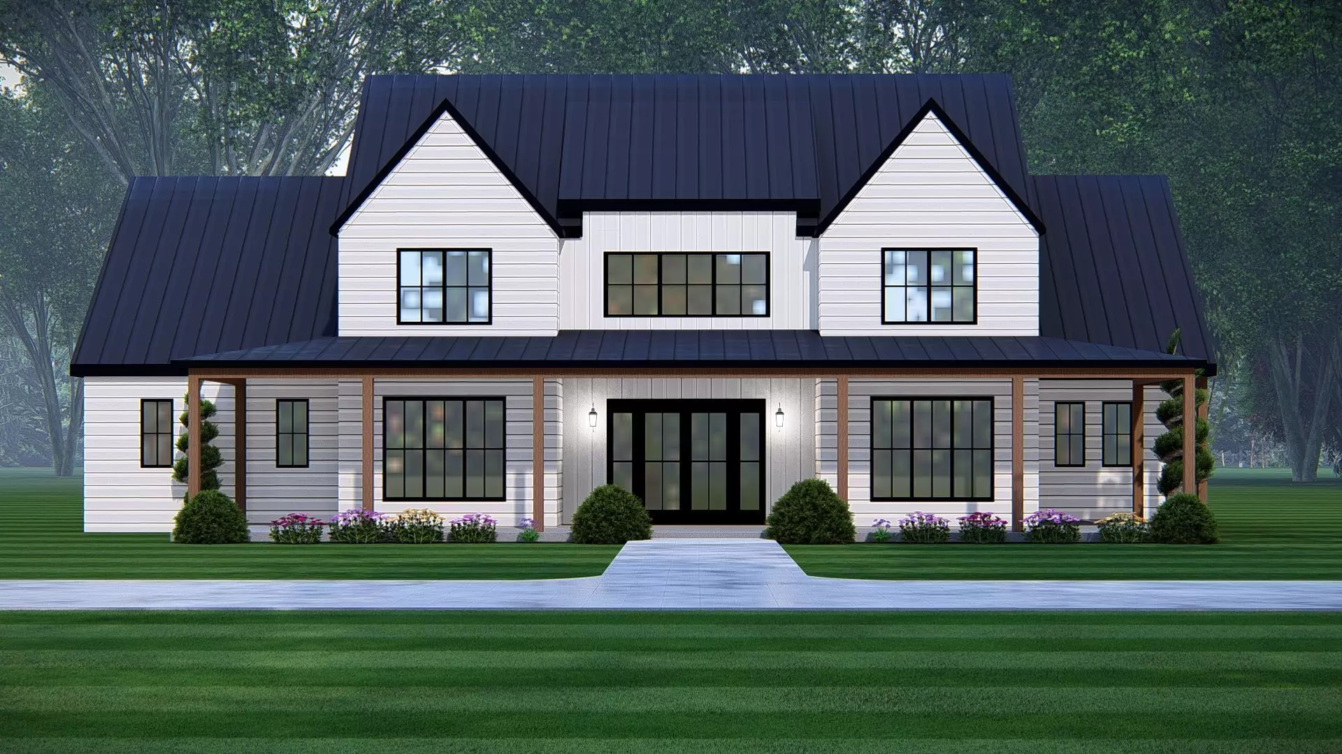 The exterior design features wide porches, rustic wooden textures, pitched roofing, barn-inspired elements, and open layouts that embody the warmth and lifestyle of traditional American homesteads. This versatile house style reflects the perfect balance of rustic charm and modern practicality, making it ideal for both countryside retreats and suburban living concepts.