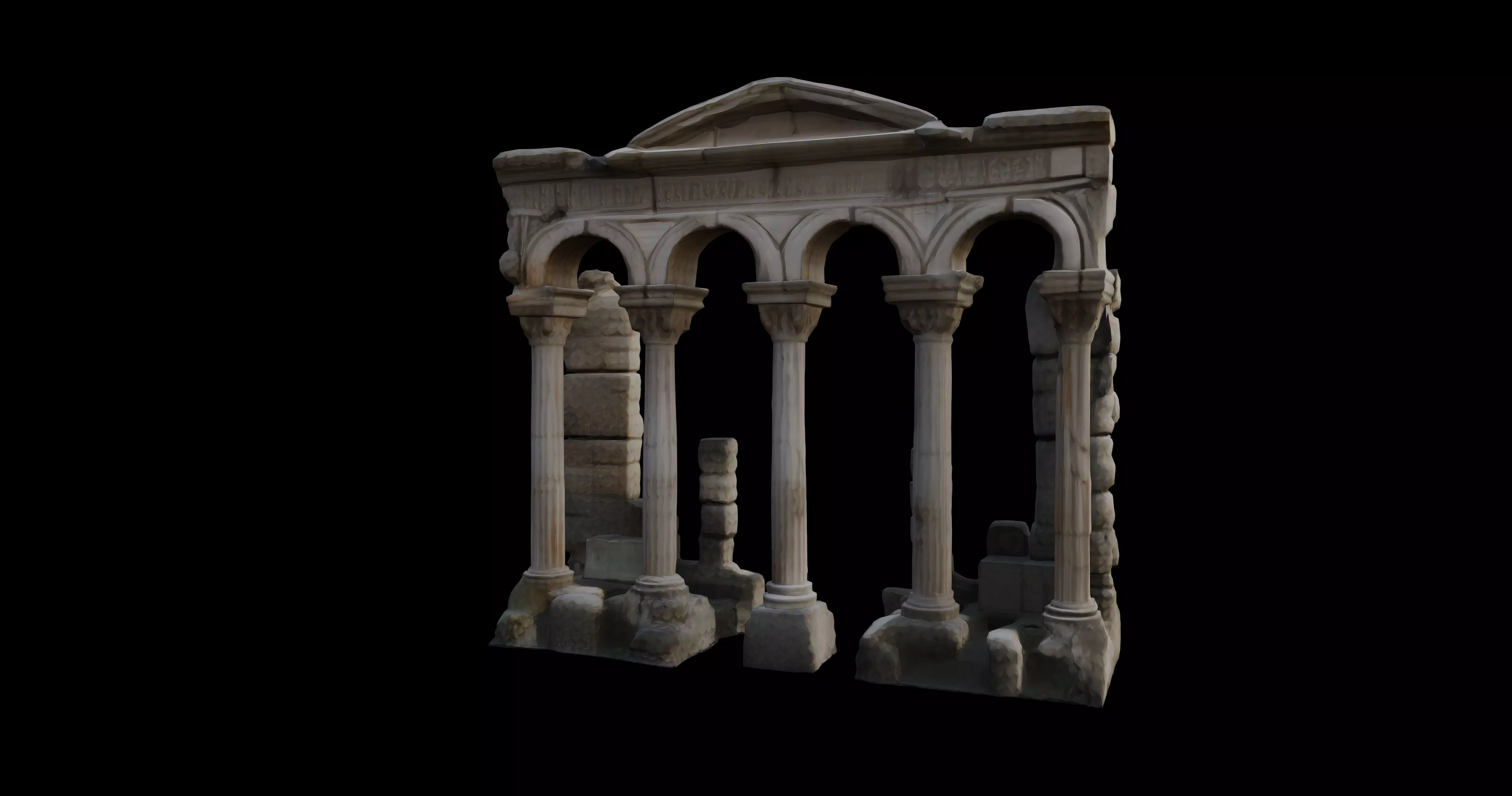 Designed with realism in mind, this model is ideal for use in historical reconstructions, game environments, or cinematic scenes requiring an authentic touch of antiquity. The weathered textures give it a timeworn look, making it a great asset for depicting abandoned or ancient locations. Each detail, from the rough stone blocks to the finely sculpted reliefs, is crafted to bring an immersive historical feel to any project.