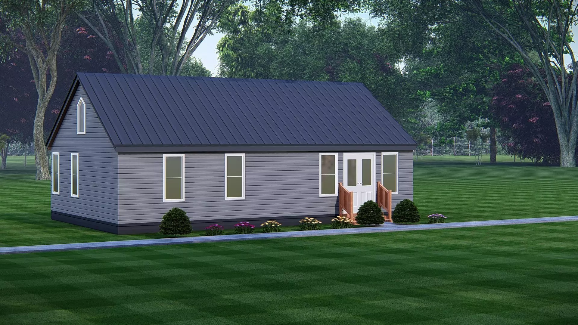 This render emphasizes the warm and welcoming aesthetic of rural architecture while adapting it to a smaller, space-saving footprint. Perfect for use in architectural visualization, real estate marketing, VR/AR environments, home design concepts, and 3D rendering projects, this model highlights the practicality and beauty of compact homes designed for modern living.