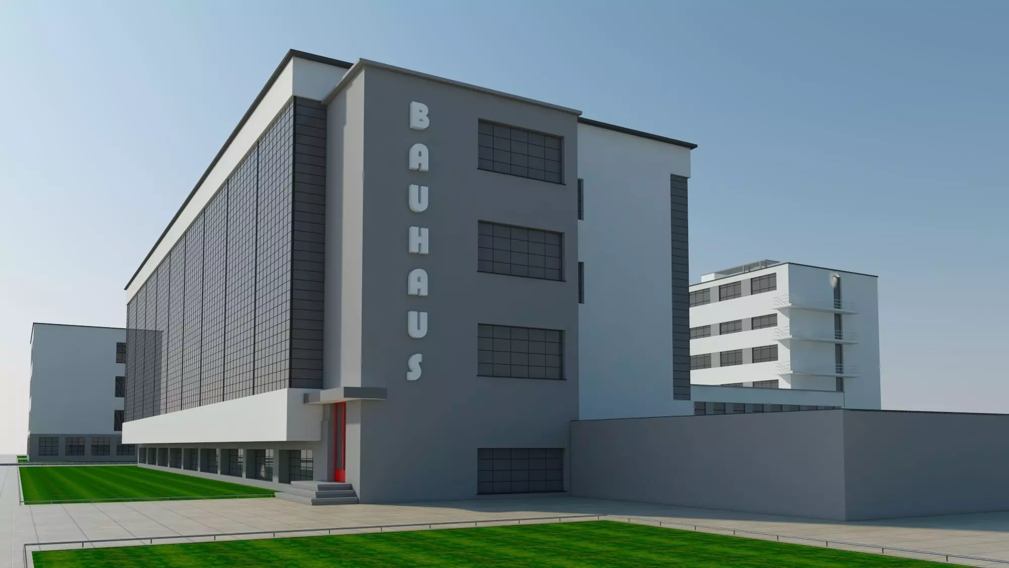 Bauhaus, Dessau, 3dModel, Walter, Gropius, Architecture, Modern, Exterior, Layout, 3d, Model, Layout, Landscape