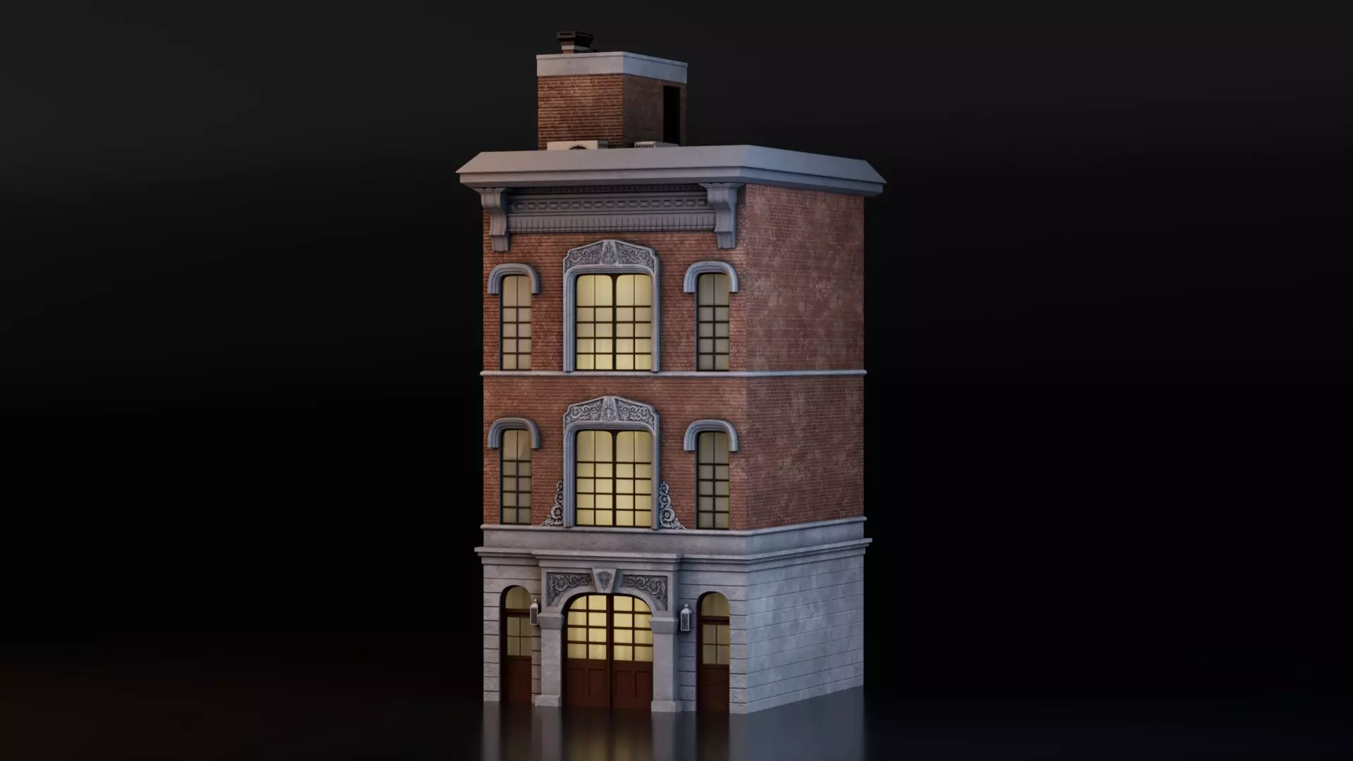The building model features a classic brick architectural design, ideal for urban cityscapes, historical recreations, background props, or main scene structures. With intricately modeled elements such as brick walls, window frames, doors, ledges, and roof detailing, this asset can seamlessly blend into modern, retro, or stylized scenes. Each component is UV unwrapped for easy editing and customization, with clean topology and well-organized mesh groups for intuitive workflow integration.