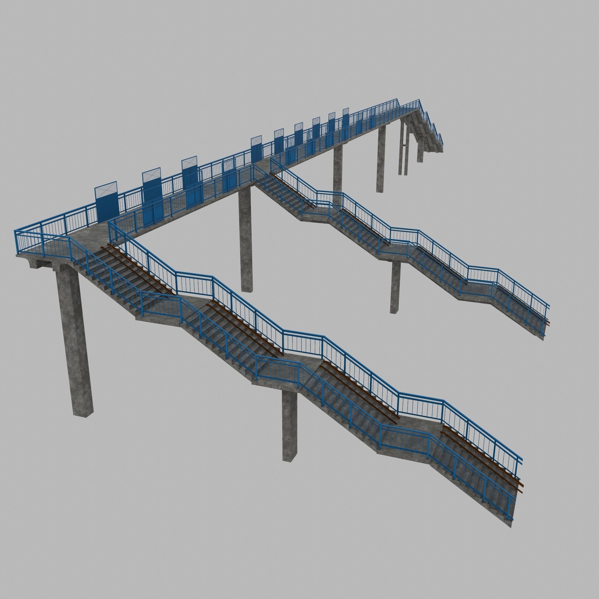 Lowpoly model of a pedestrian viaduct across the railway. Polygons 25304. Faces 51166. Points 30102. The grid consists of quadrangular polygons, with triangulation - triangles 50608. Similar bridges were used in the Soviet Union and are still in use today.