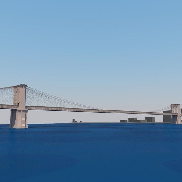 Brooklyn Bridge building. 3d model of the Brooklyn Bridge. Only basic forms. proportions and size close to real one.it is no have UV unwarp, only materials with flat colors. quad mesh. file format is 3ds max.good for far view, enviroment. fit for game engines like unity and unreal