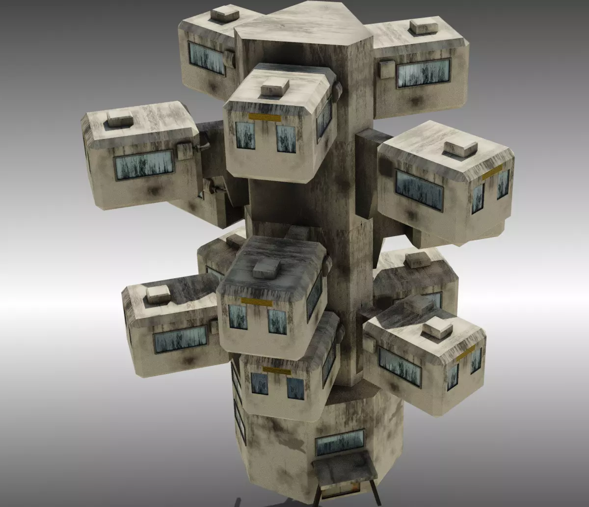 This is a low poly model of Building in form of Capsule made of concrete.Model consists textures in 2 wariants 2k (2048 x 2048) or 1k (1024 x 1024). There are few maps: Diffuse Map, Roughness Map, Normal Map, Metallic Map, AO Map.Model rendered with 2k textures, but 1k also look good.