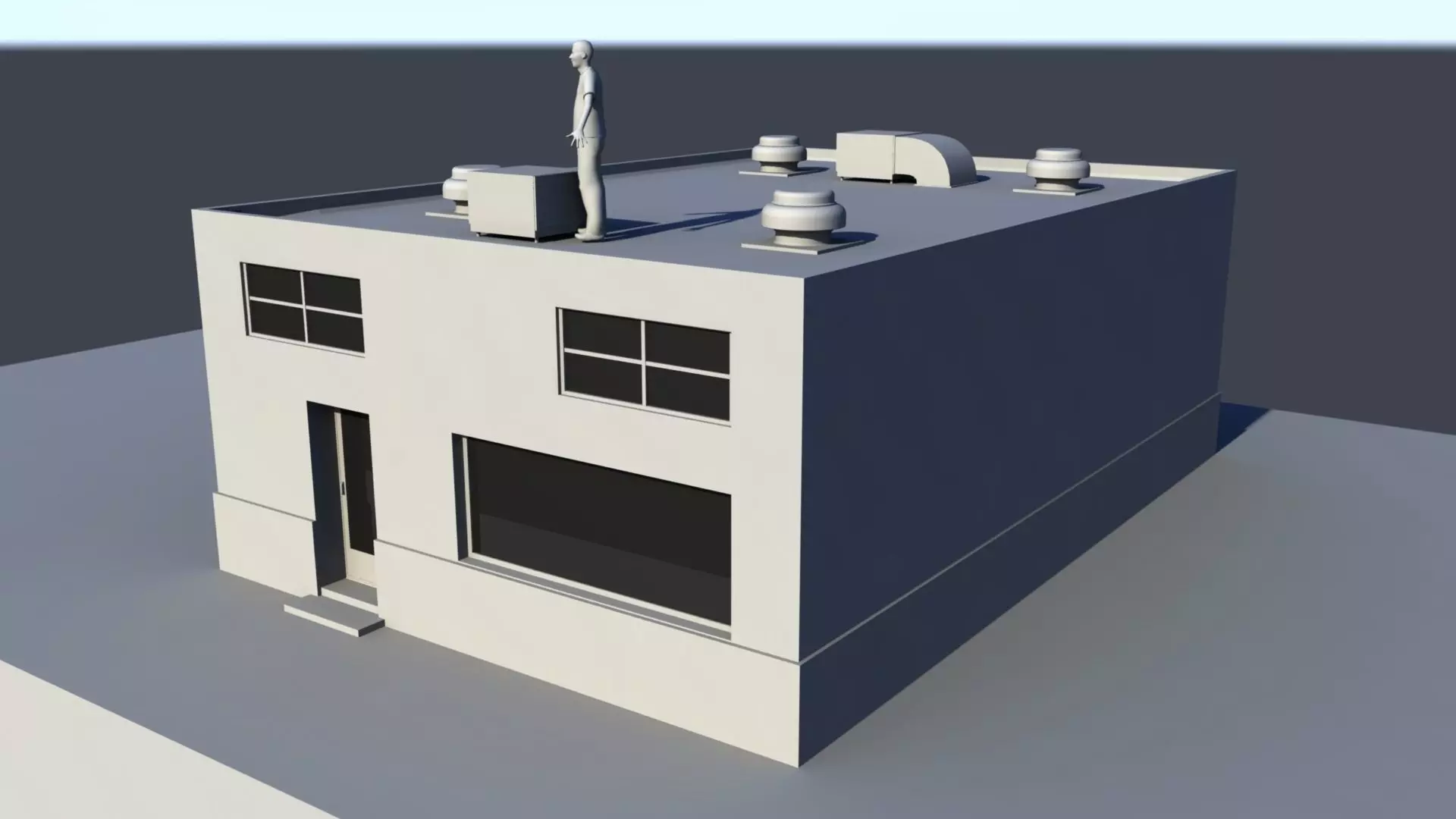 This is a low poly combo of a building I created. No textures included. Roof air vents and ac included. Human not included.