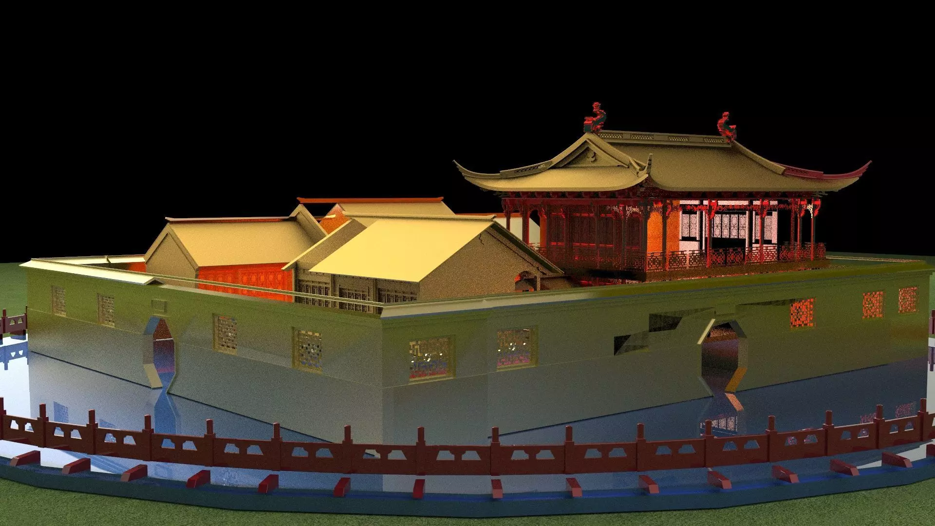 The model has material settings that define how surfaces look (color, shine, transparency, etc.).