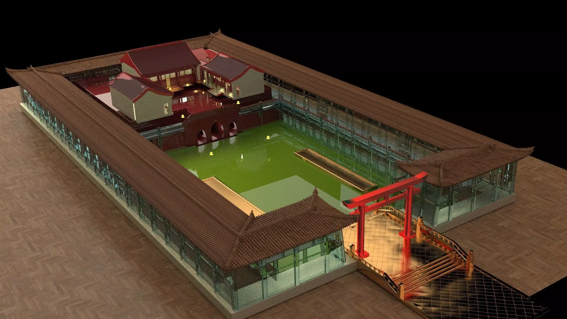 The model has material settings that define how surfaces look (color, shine, transparency, etc.).