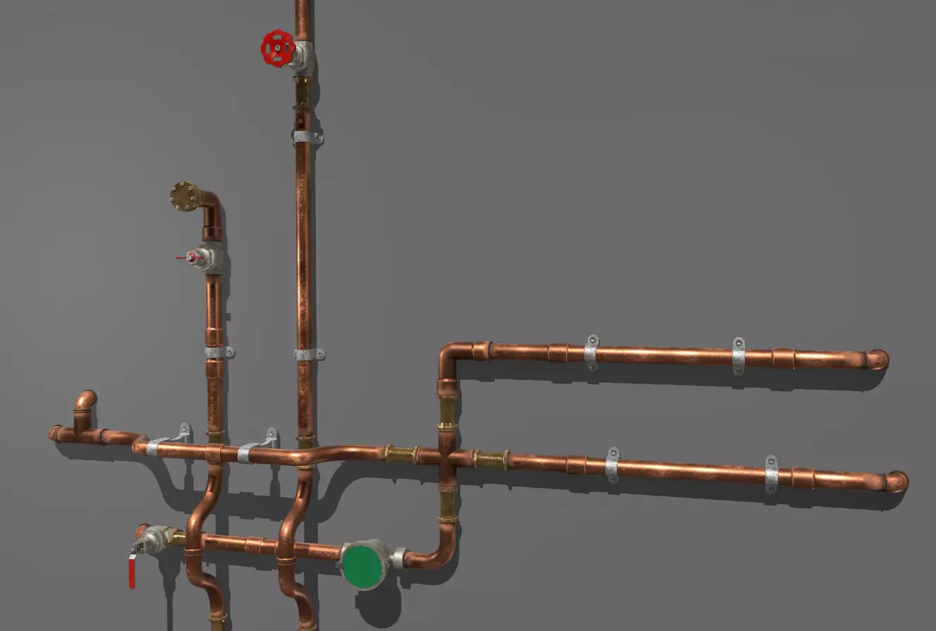 Copper Water Pipes Low-poly 3D model