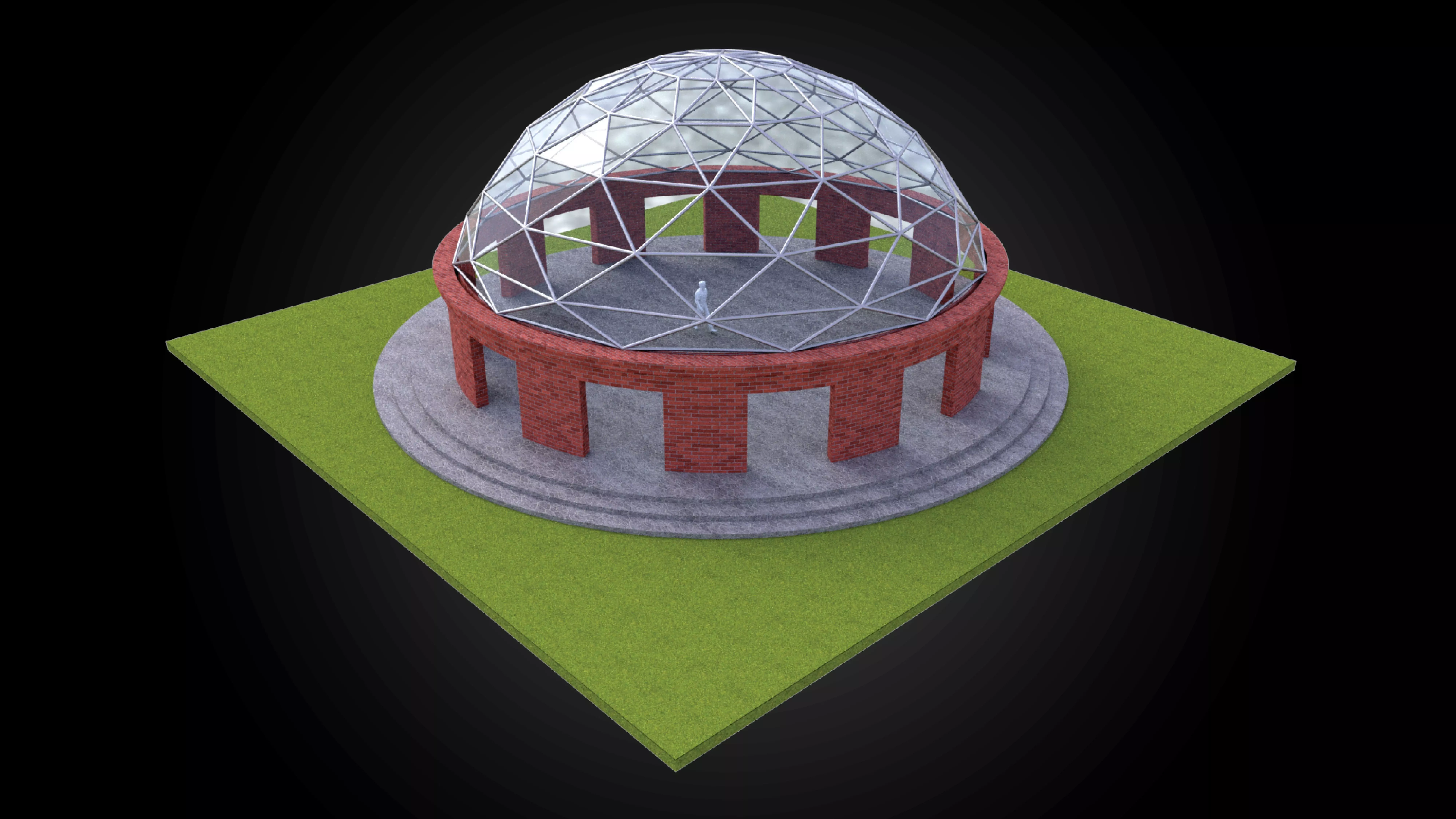 Dome with glass panels triangulated wire-frame steel structure