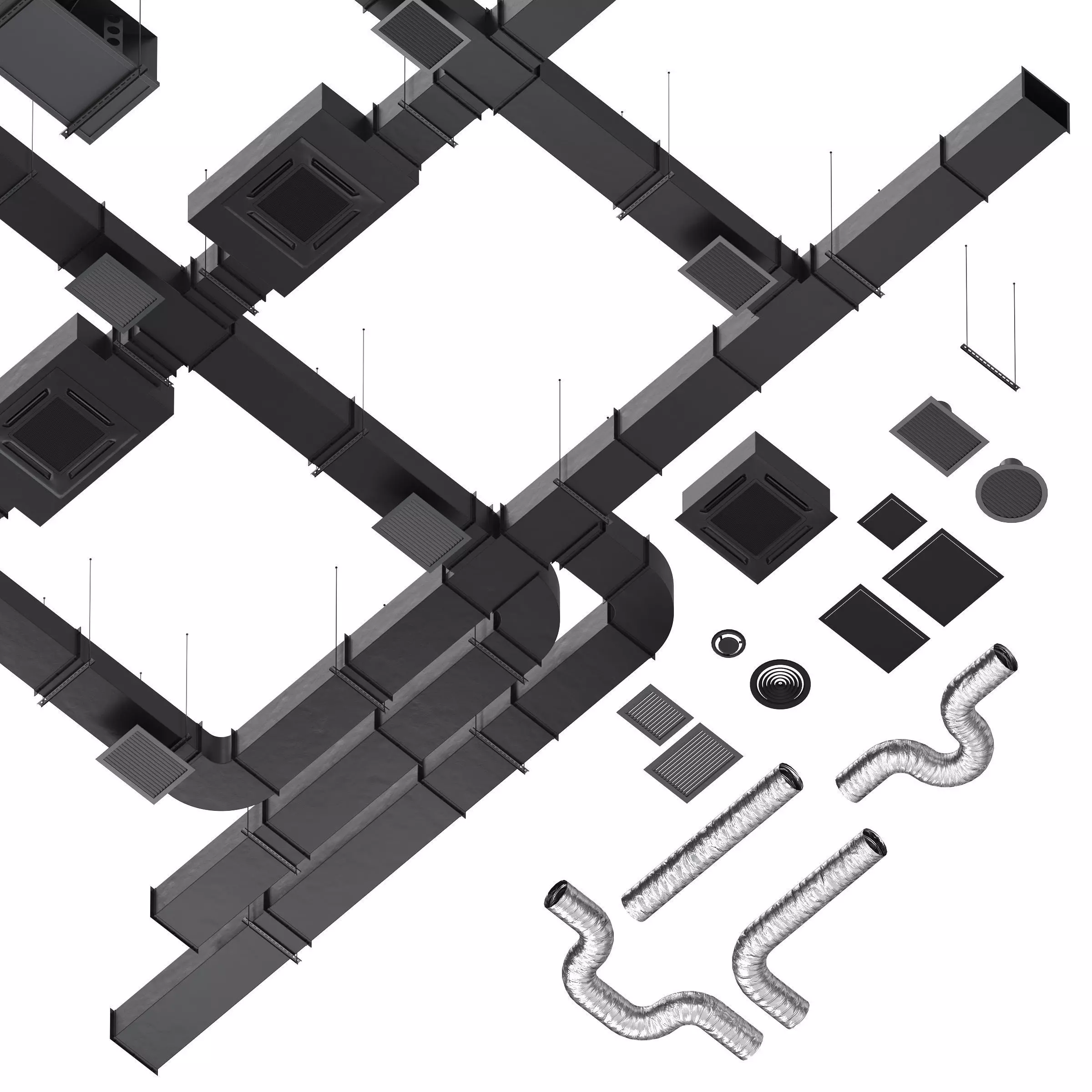 Duct System Components Low-poly 3D model