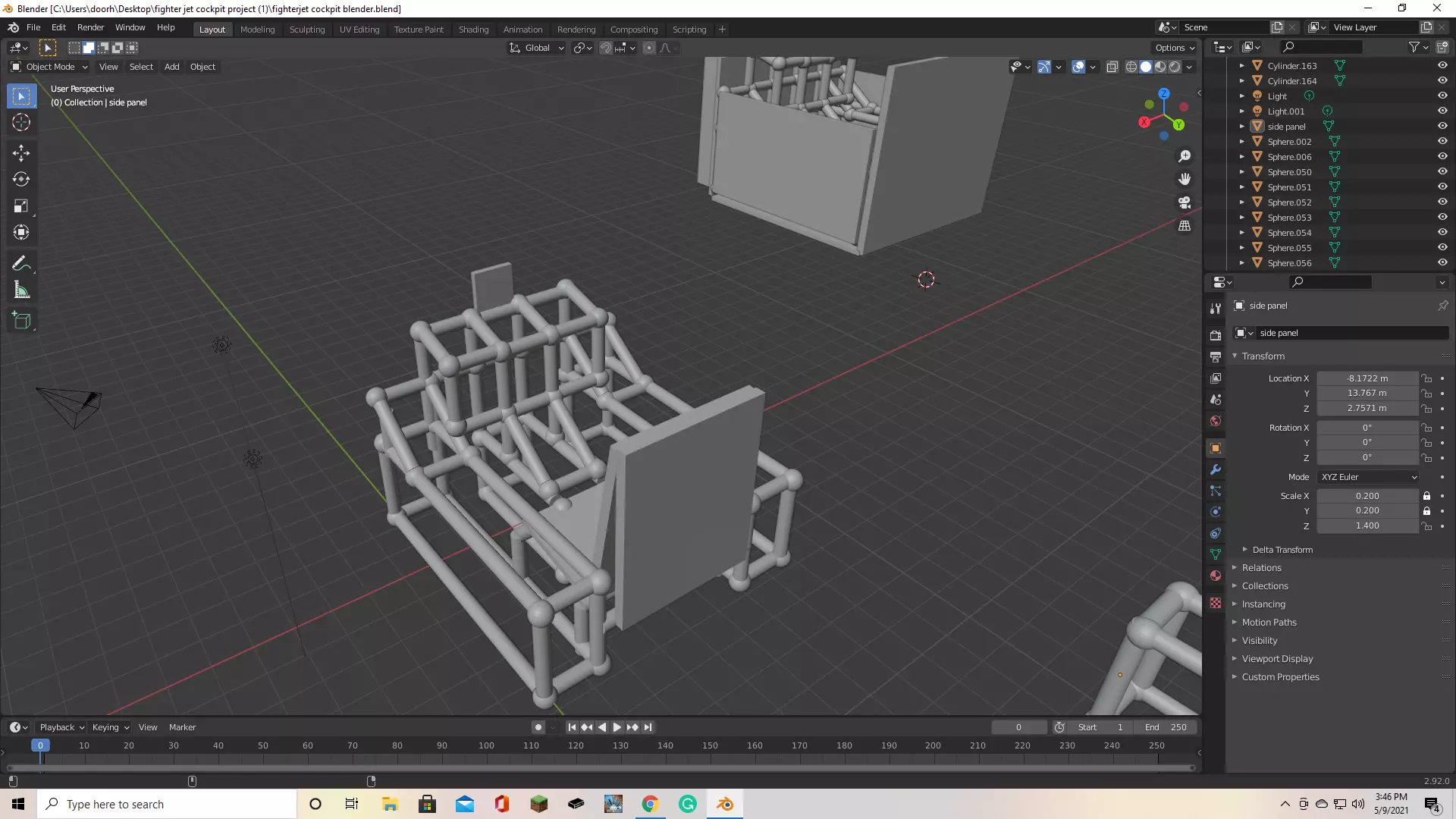 The model has material settings that define how surfaces look (color, shine, transparency, etc.).