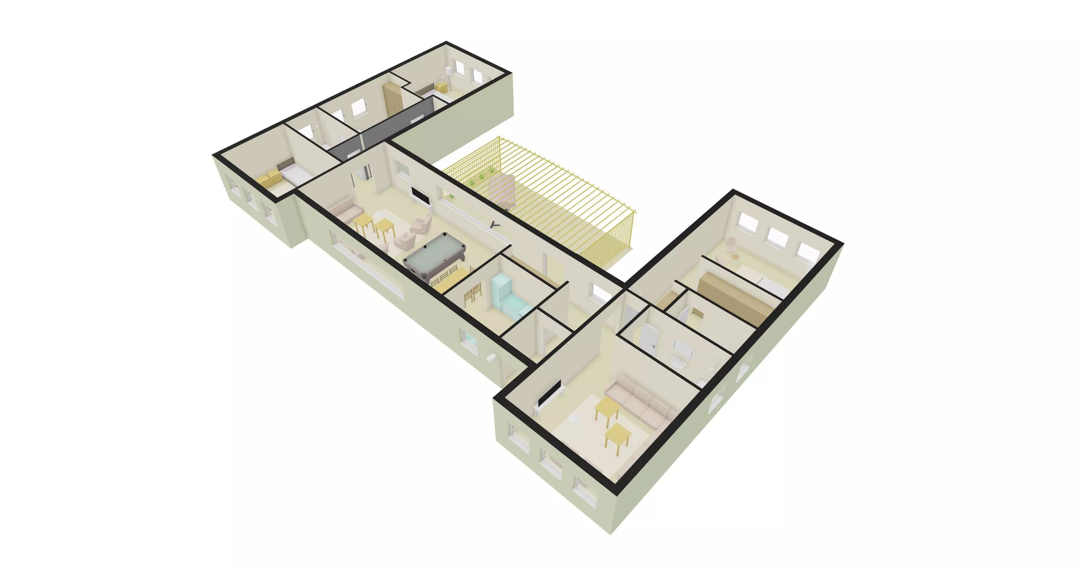 Four bedrooms home design 3D model
