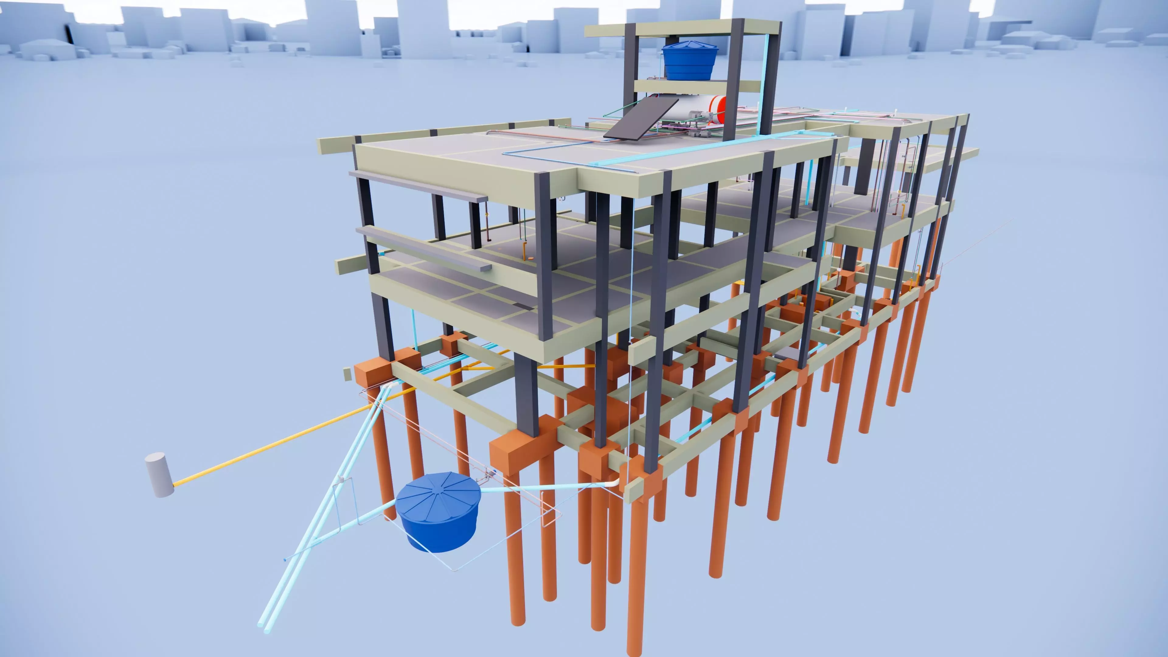 The model has material settings that define how surfaces look (color, shine, transparency, etc.).