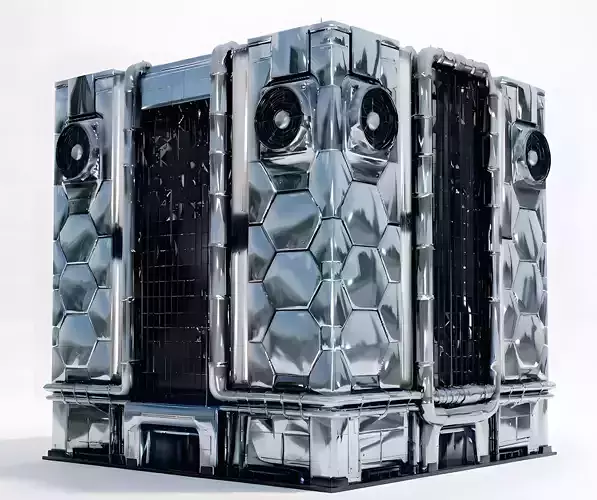 The Overall Concept This asset is a heavy industrial building designed for a sci-fi or cyberpunk world. It looks like a massive supercomputer, a power generator, or a secure server bank that you might find in a high-tech city.