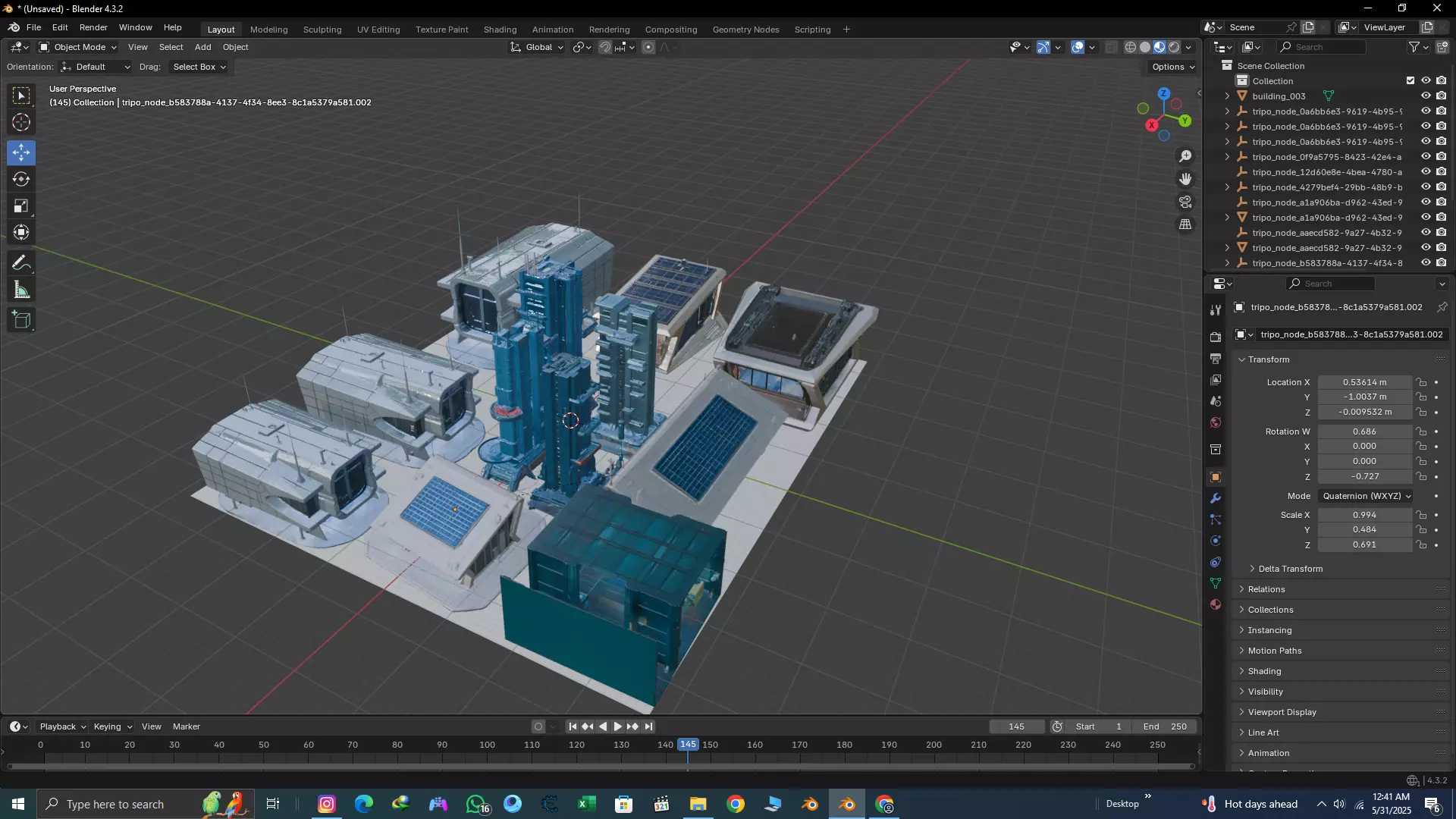 The model has material settings that define how surfaces look (color, shine, transparency, etc.).