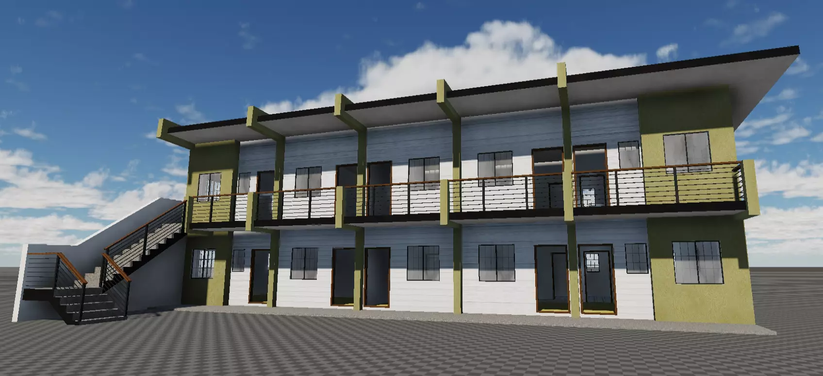 This small bi-level studio apartment complex features 10 enterable units. There are two room styles: Both are technically ony two rooms, but one is slightly larger and has room for a full kitchen, while the other only has room for a small kitchenette. Both have bathrooms large enough to fit a toilet, sink, and a shower or tub. There are 4 of the larger rooms and 6 of the smaller.