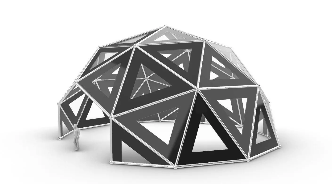 This is a Geodome created in Rhino 6 along with Grasshopper. This is a custom design that can be updated and changed.