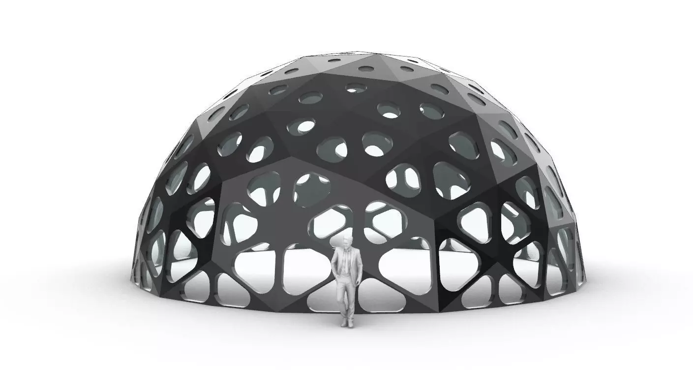 Geodesic Dome with Dynamic Perforations and glass panels 3D model