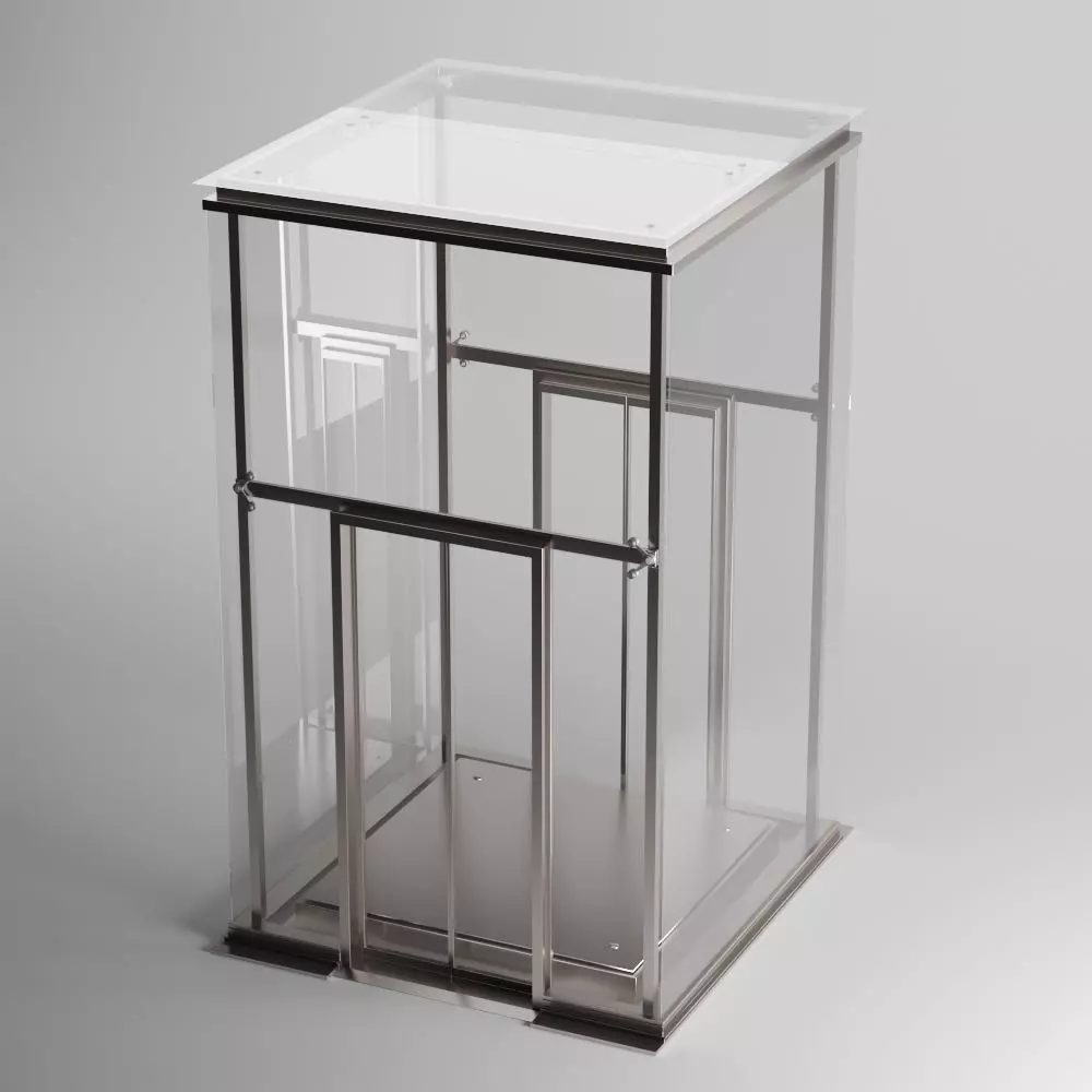 3D model of an exterior elevator, with glass/metal materials. Mesh is mainly based on quads, smooth and clean.