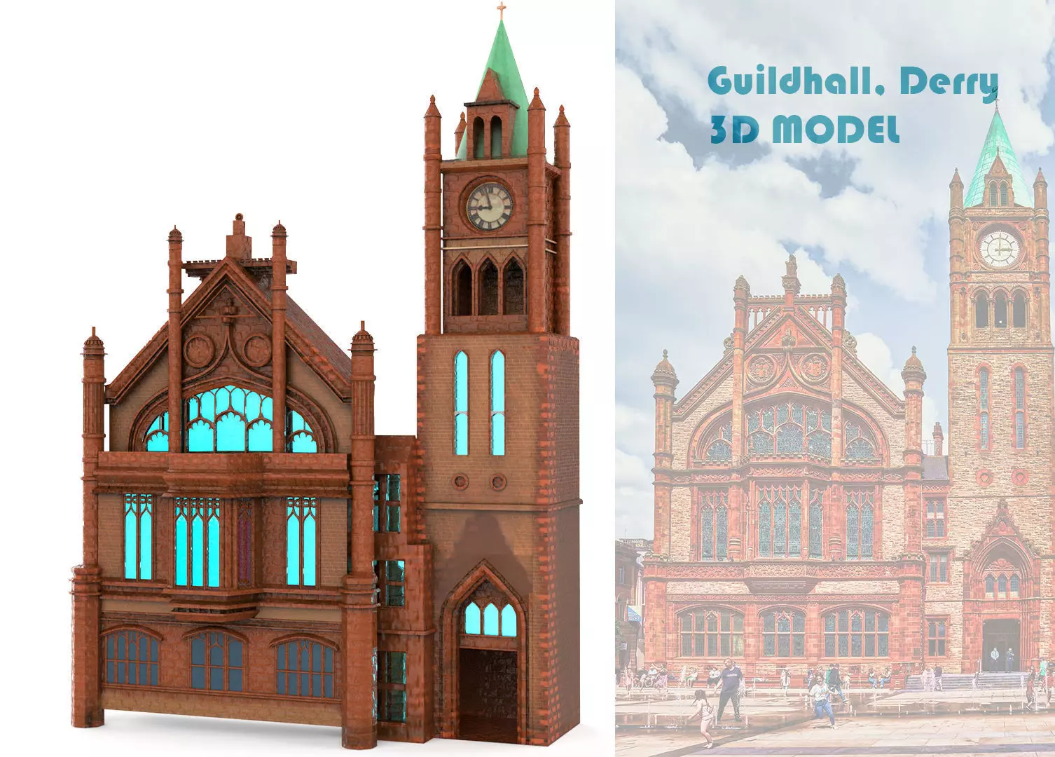 Guildhall is an iconic building located in Derry City Strabane that serves as a government building and cultural center. This model captures the building's unique architecture, including its grand façade, intricate details, and striking clock tower. With realistic textures and materials, this model accurately represents the building's brickwork, windows, doors, and roof, making it a great addition to any project.