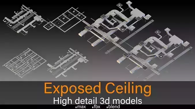 This is an essential, meticulously detailed 3D model of a complex industrial exposed ceiling system. Designed for exceptional visual fidelity, this asset is perfect for architectural visualization, high-end CGI scenes, and conceptual environment renders where realism and structural complexity are paramount.