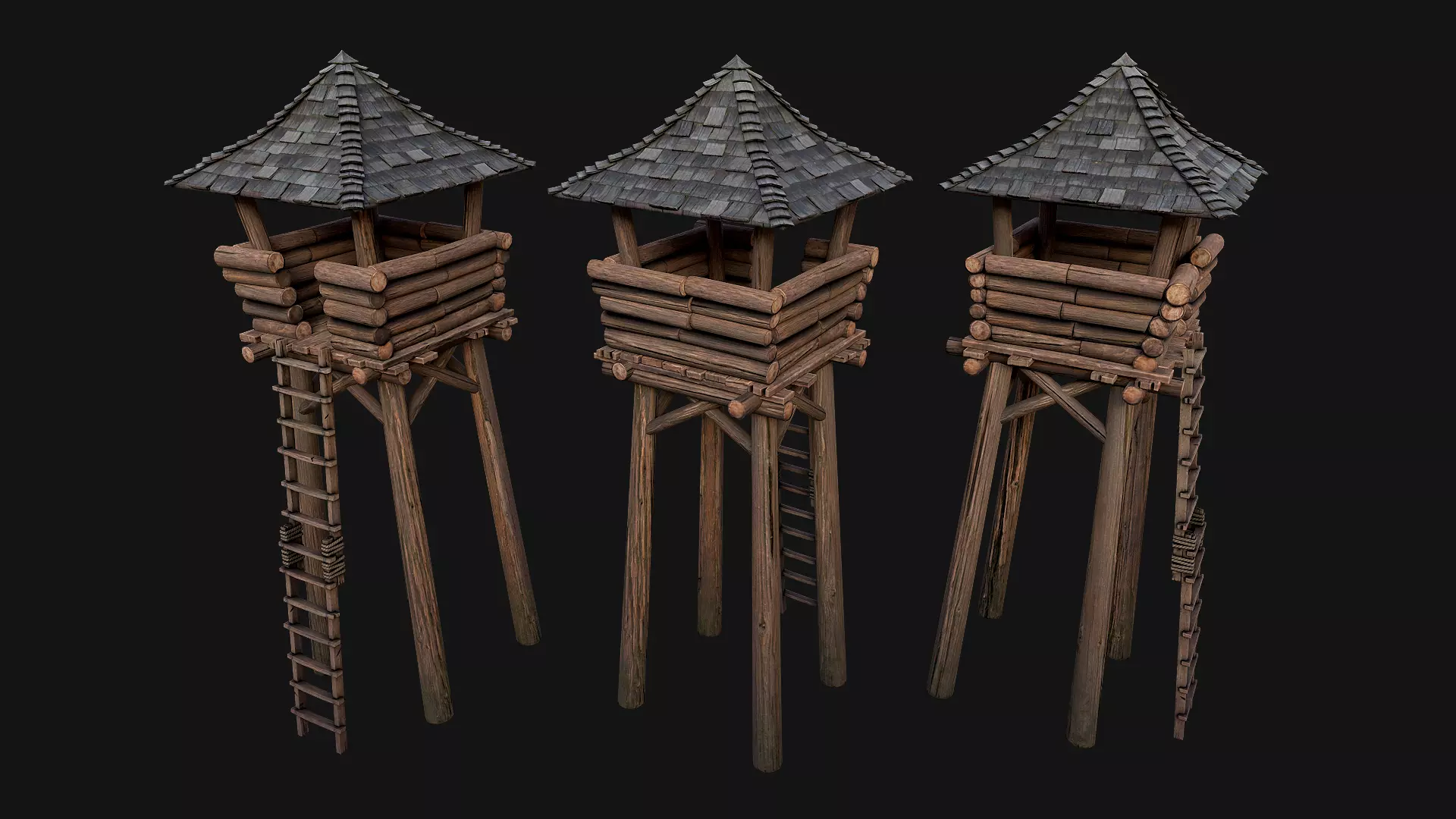 Game ready model.Stylized and detailed Medieval Lookout Tower fully textured, sculpted and rendered with Physical based rendering (PBR) - Shown images have been rendered in Marmoset Toolbag .The models contains lods, detailed information on the images.