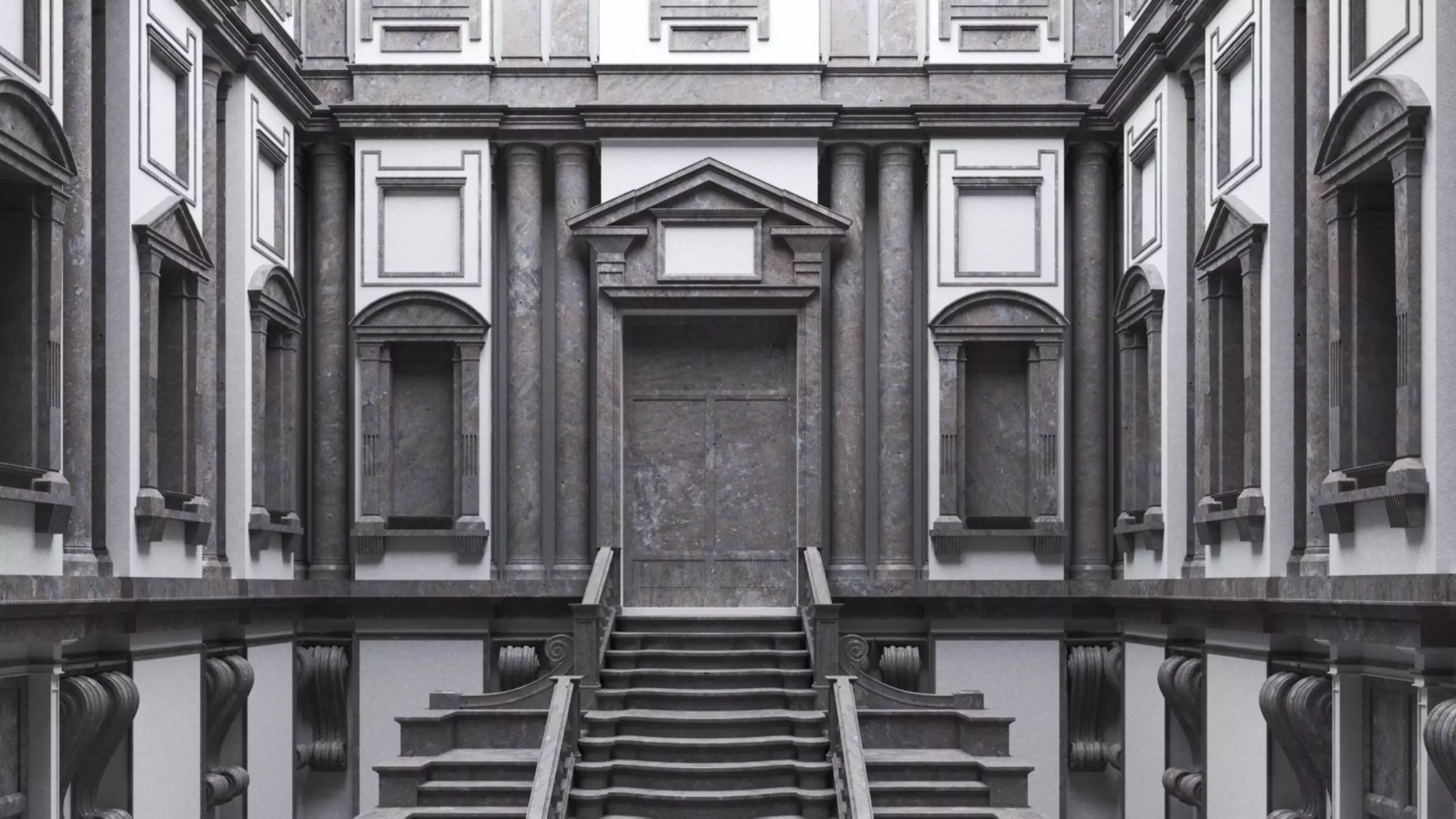This project is a 3d modeling recreation of Michelangelo’s Laurentian Library in Florence, an architectural masterpiece from the 1500s. The volume in question is that large vestibule at the entrance of the library, with the iconic stairs curling towards it.