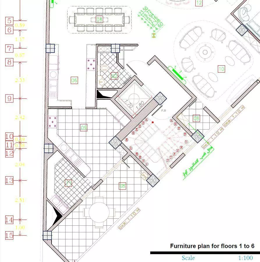 Mixed-Use Apartment Building with Commercial Ground Floor – Full Architectural Drawings (DWG+PDF)This is a complete architectural project for a modern mixed-use building with 6 residential floors above a commercial ground floor, and a basement.The plot has a unique triangular shape, and the design efficiently utilizes the space.Each floor includes a single large apartment unit (~250–300 m²) featuring: • 3 Bedrooms (2 are Master bedrooms with En-suite bathrooms and walk-in closets) • 3 Balconies • Separate Living Room and Guest Lounge • Full Kitchen with Pantry, Utility (Laundry) Room • Basement with service and parking layout • Ground floor includes retail/commercial layout