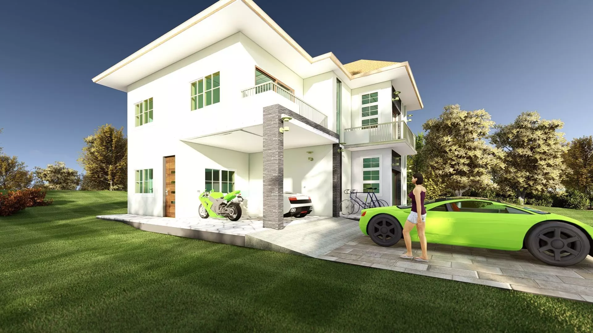 The model has material settings that define how surfaces look (color, shine, transparency, etc.).