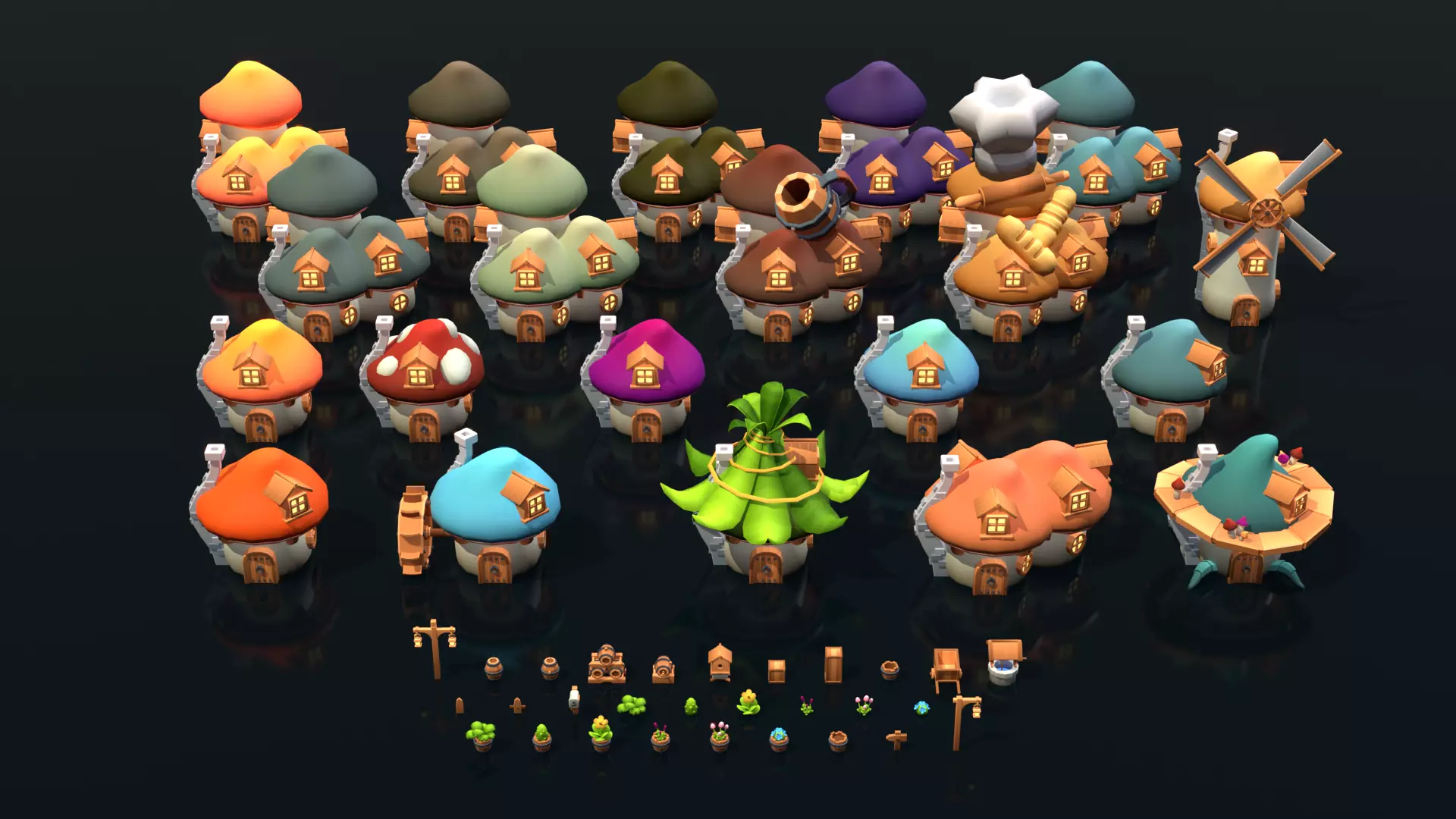Mushroom House Pack Low-poly 3D model