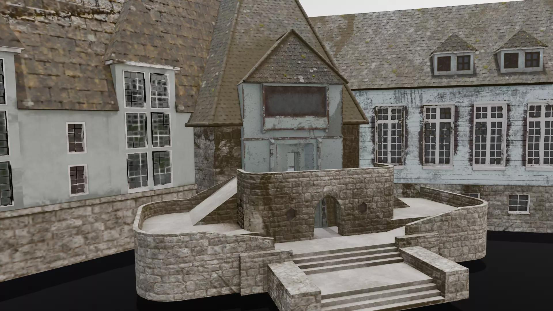 Textures: High-resolution textures have been applied to the model to enhance its visual detail and realism. These textures accurately replicate the aged and weathered surfaces typically found on old buildings, including brickwork, stone, wood, and metal elements, contributing to an authentic appearance.Materials: A variety of materials have been utilized to define the surface properties, such as reflectivity, roughness, and color. This meticulous application of materials ensures that the model accurately represents the weathered and timeworn look of an old building, adding depth and realism to its visual presentation.Rigging and Animation: