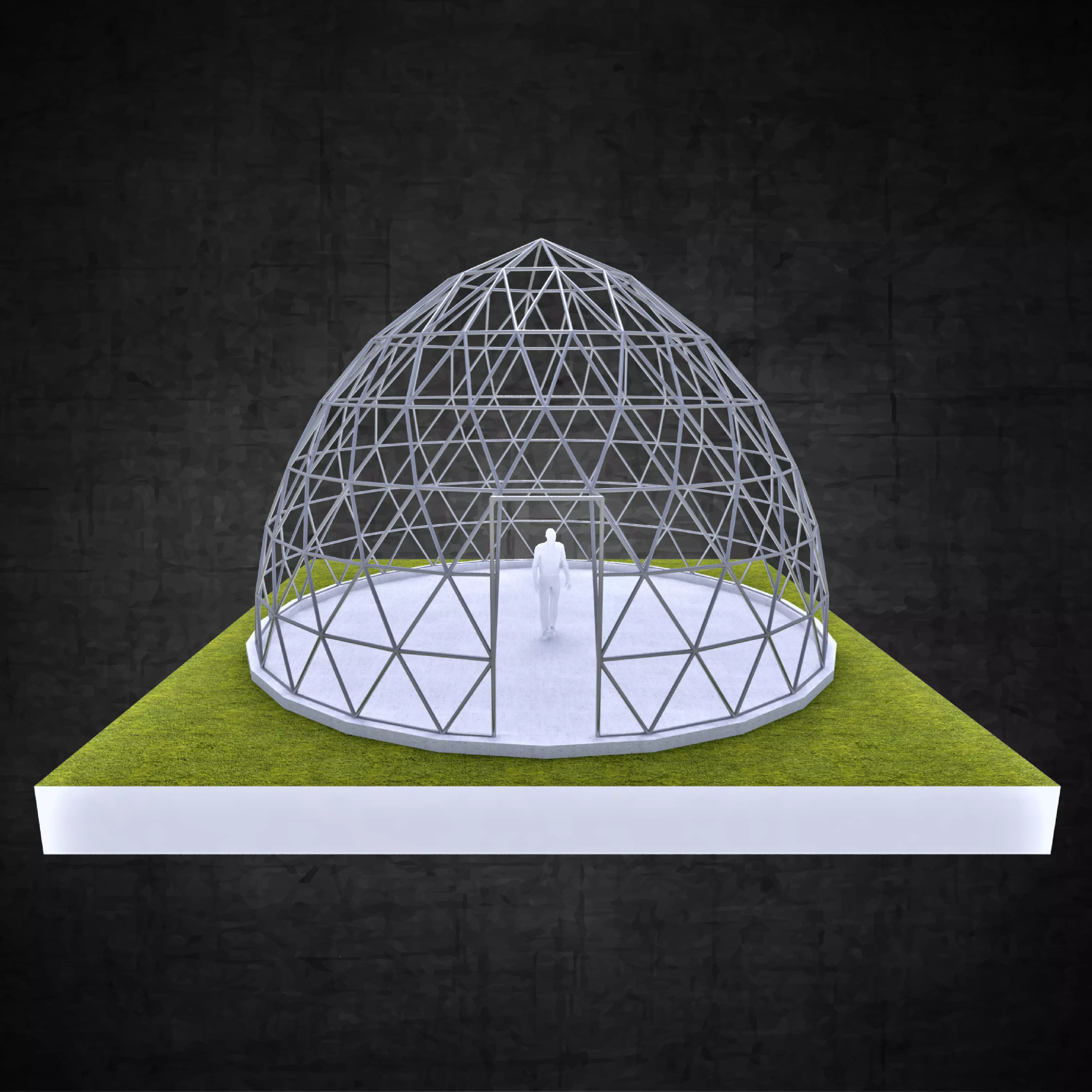 Pointed dome geodesic triangulated structure wire frame struts Low-poly 3D model